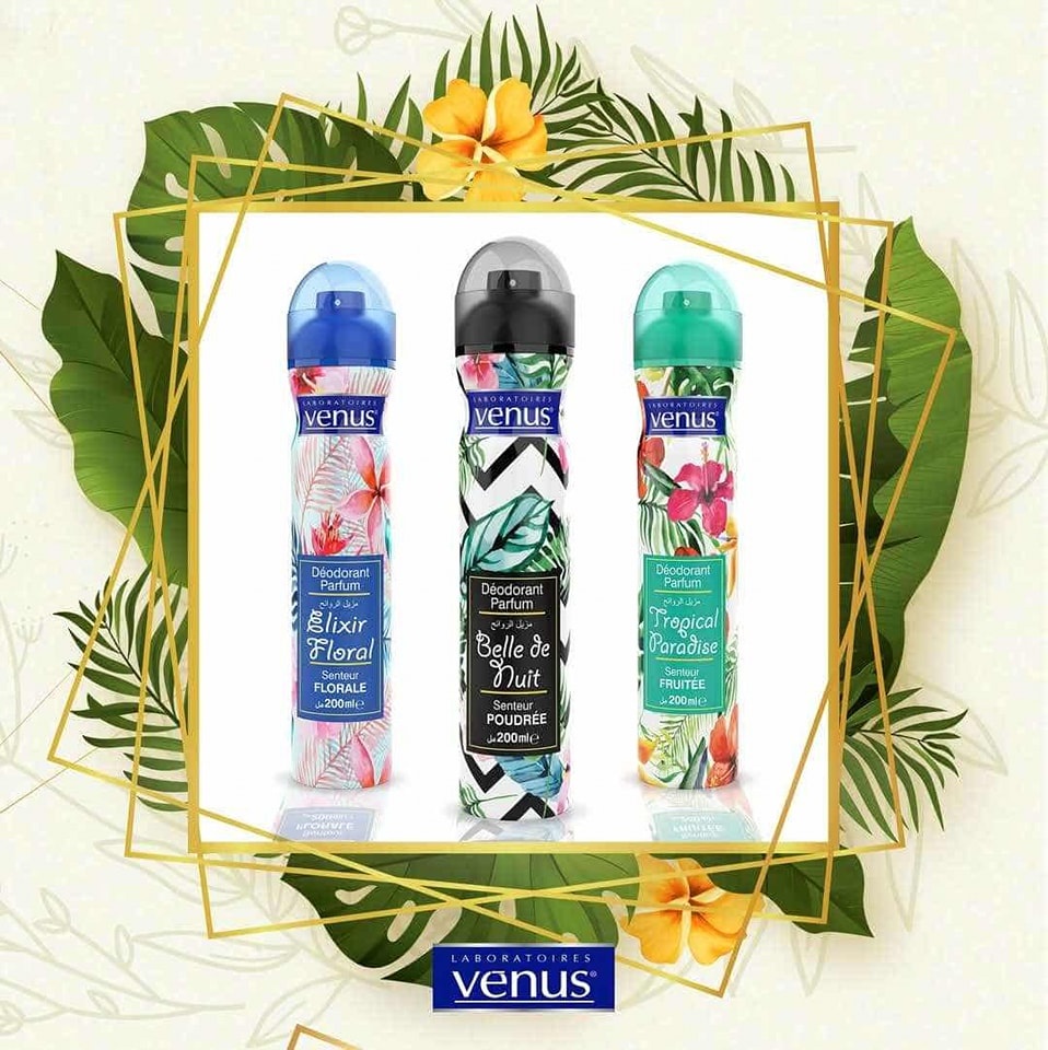 صُممت مجموعة بخاخات Venus Deodorant لتكون رفيقك اليومي الذي لا غنى عنه. بفضل تركيبتها المتطورة التي تدوم حتى 24 ساعة، تمنحك هذه البخاخات حماية فعالة ضد الروائح غير المرغوب فيها مع لمسة عطرية ساحرة تناسب كافة الأوقات.